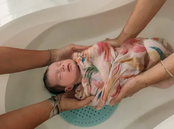 À cet âge, votre bébé peut revivre en douceur les sensations de sa naissance et se sentir plus calme et sécurisé pendant le bain.